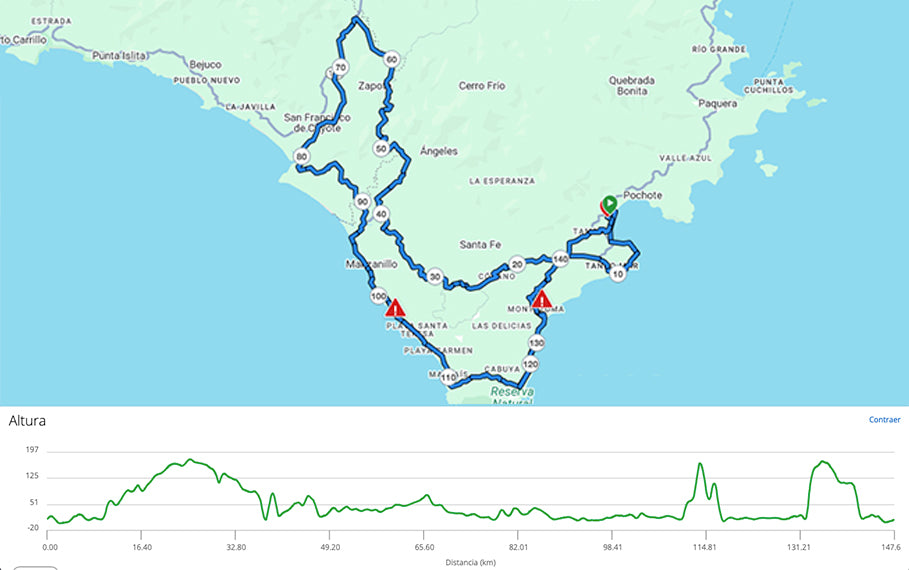 El GiroPio 2026 recorrerá los paisajes más emblemáticos de la Península de Nicoya, iniciando en la majestuosa bahía de Tambor frente al mar Pacífico. Los ciclistas atravesarán caminos de asfalto y tramos de lastre que serpentean entre pueblos costeros, bosques tropicales y ríos cristalinos, pasando por comunidades llenas de historia y la calidez de su gente. El trayecto combina el reto físico de ascensos exigentes con la recompensa de vistas panorámicas al océano y atardeceres inolvidables, convirtiendo cada kilómetro en una experiencia única que une deporte, cultura y naturaleza en una verdadera aventura de Bikecation.